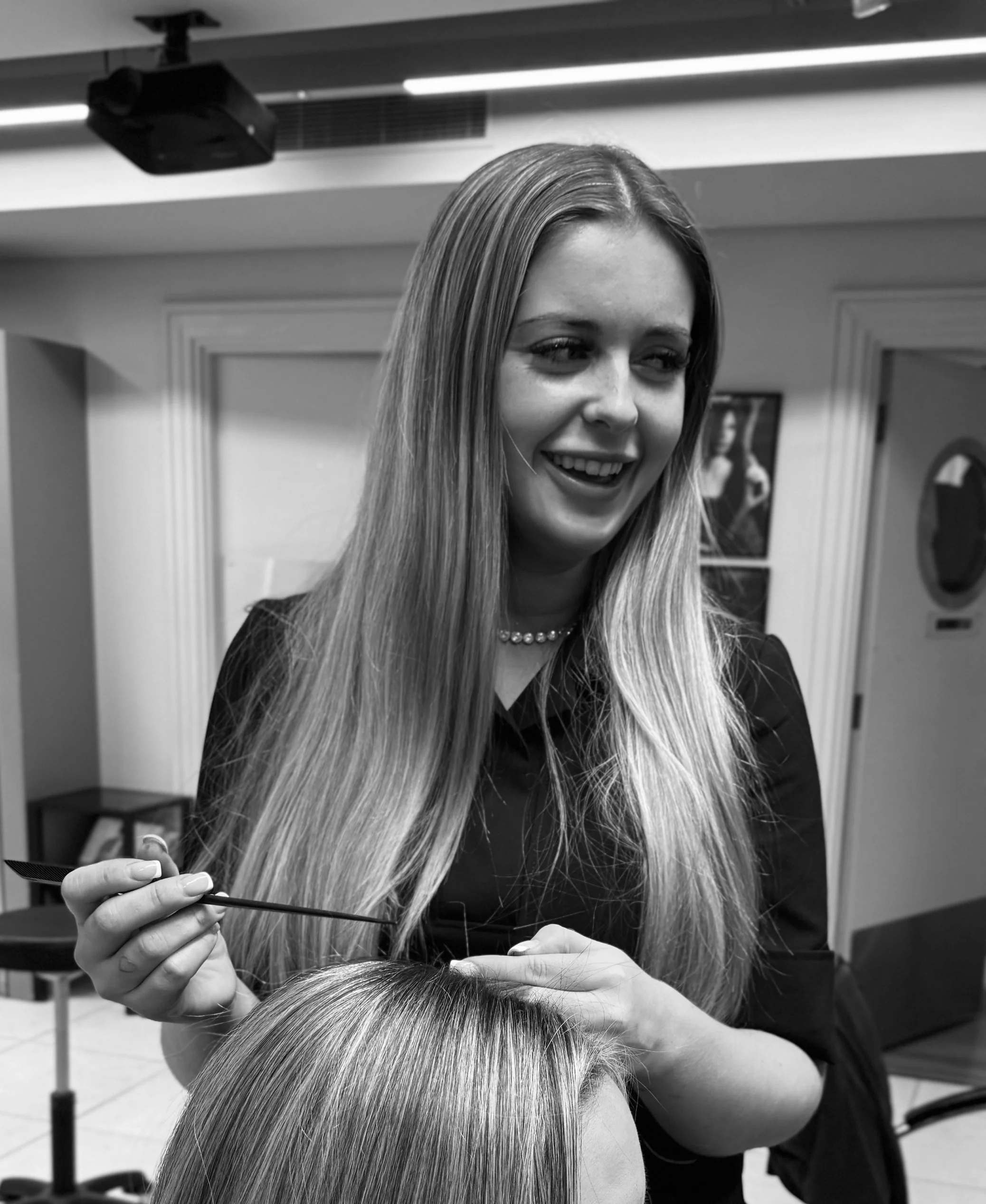 Her career in our industry began at age 14 as a “Saturday Girl” in a local salon, where she discovered her talent for hair and beauty—a passion fueled by her mother, a former hairdresser and beauty therapist. By 17, Rebecca had completed her formal training at TLT Academy, mastering everything from technical color theory to advanced styling techniques. Her growth continued when she joined Richard Ward’s team, where her skills flourished through the vardering process. Her talent and dedication earned her the coveted Junior Show award and the title of Head Junior—a significant milestone.